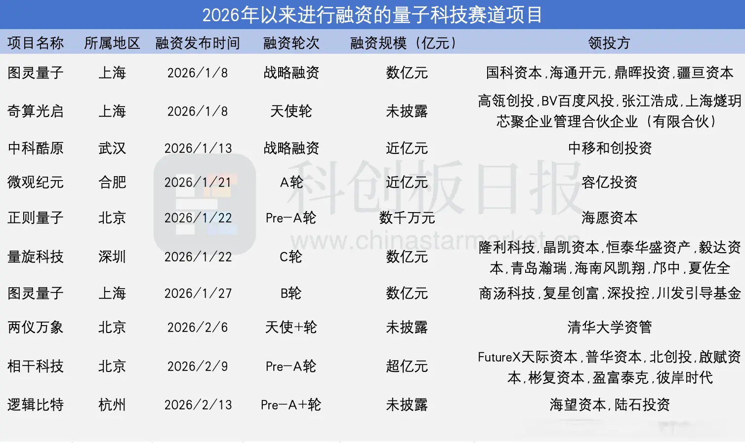 看成硬科技理念提议方的中科创星,则看好不筹量子。不筹量子于2025年12月秘书完成数千万元的天神轮融资,由中科创星领投,复容投资、东方富海共同参与。