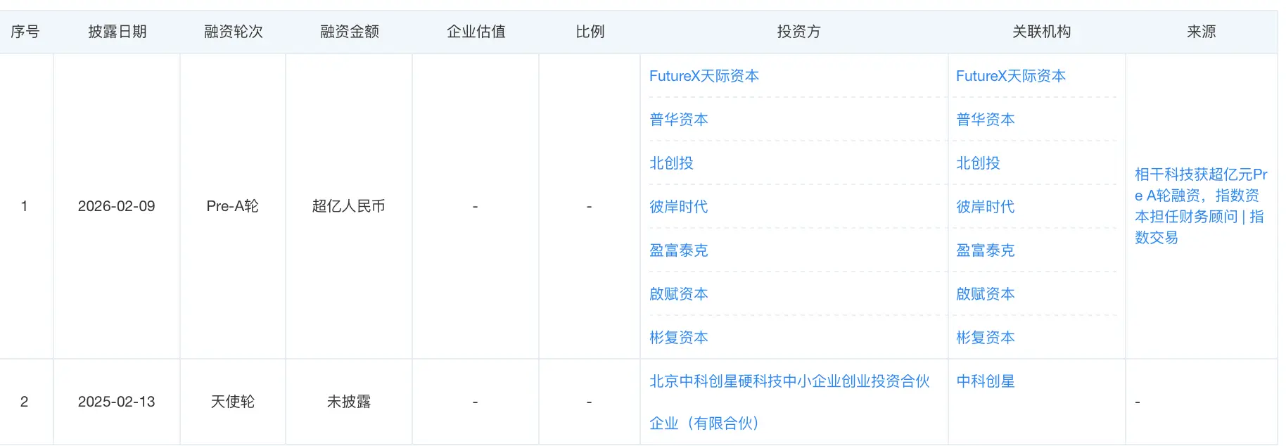 融资规模超亿元的还有干系科技。2月9日,干系科技秘书完成超亿元Pre-A轮融资,由天空本钱、普华本钱领投,北创投、此岸时间、盈富泰克、启赋本钱、彬复本钱等机构跟投,指数本钱担任财务照拂人。