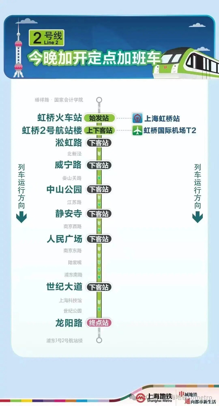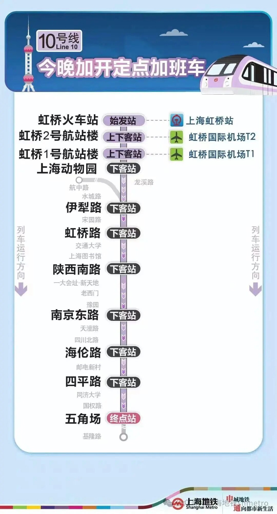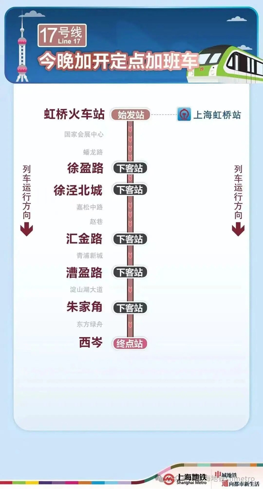 为知足春运本领乘客夜间出行需求,今晚(2月22日)2号线加开定点加班车,虹桥火车站站往龙阳路站加开至次日(2月23日)1时,开云体育10号线加开定点加班车,虹桥火车站站往五角场站加开至次日(2月23日)2时30分,17号线加开定点加班车,虹桥火车站站往西岑站加开至次日(2月23日)0时30分。定点加班车只停泊指定站点。