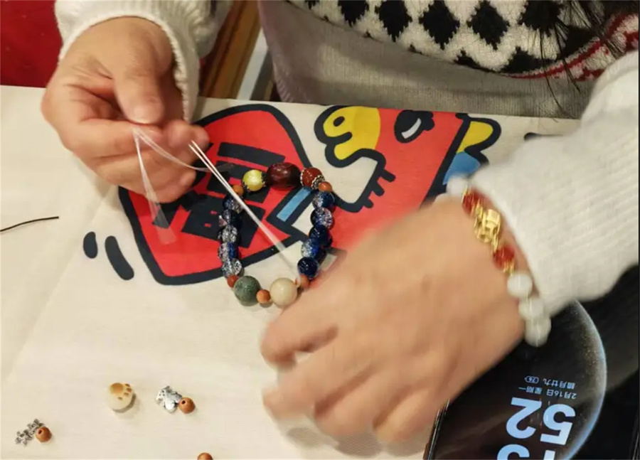 全家共同制作的手串,不错行为极具挂牵敬爱的“年礼”彼此搭救。春节的非遗行径还在捏续进行中,各项体验行径将捏续到3月3日元宵节。
