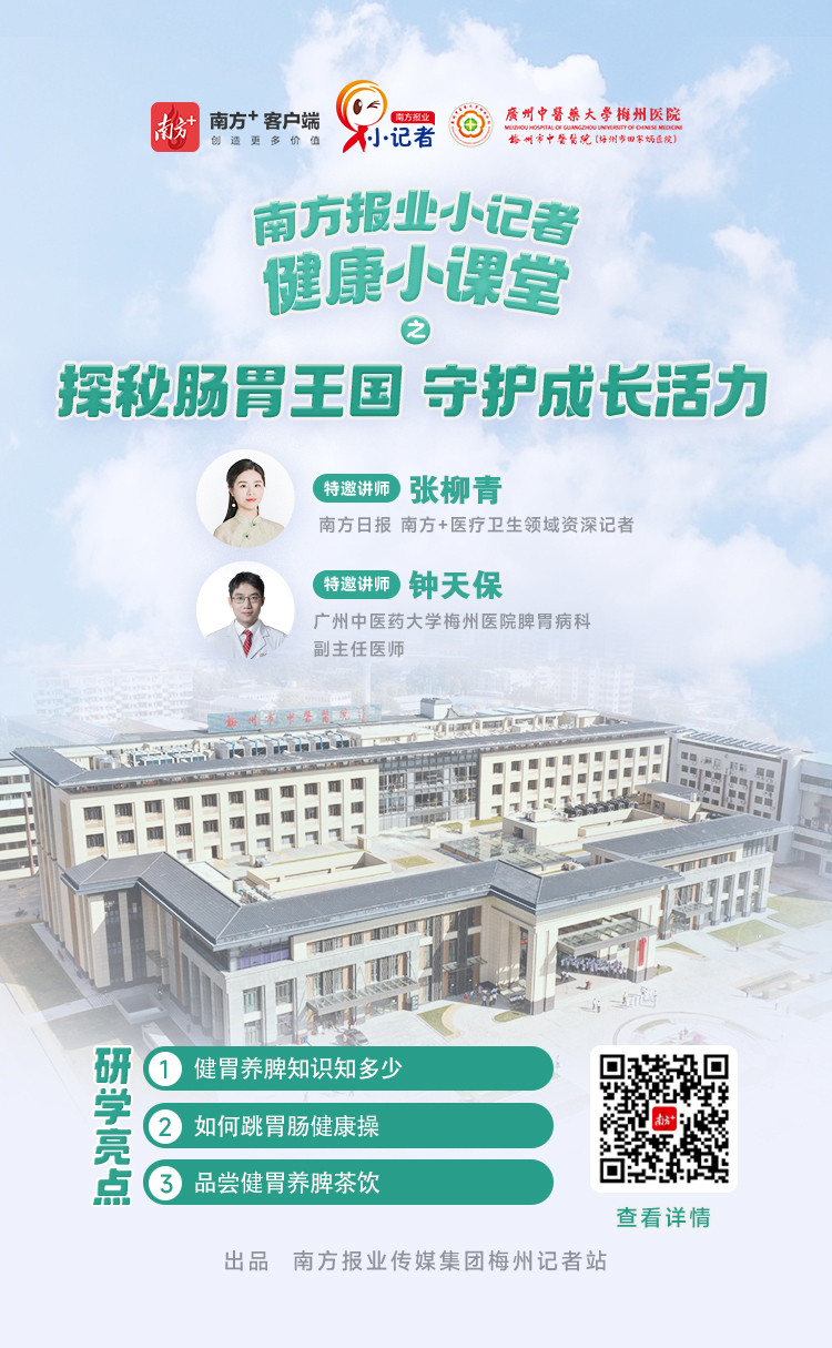 今日课堂上,广州中医药大学梅州病院脾胃病科副主任大夫钟天保将围绕举止主题,讲明儿童肠胃生理结构与功能;勾通临床案例判辨儿童常见肠胃问题的成因与危害,还会传授科学饮食、端正作息、正确洗手等实用养护程序,澄莹“养胃就要多喝粥” 等常见判辨误区,让孩子和家长稳固掌执肠胃健康学问。