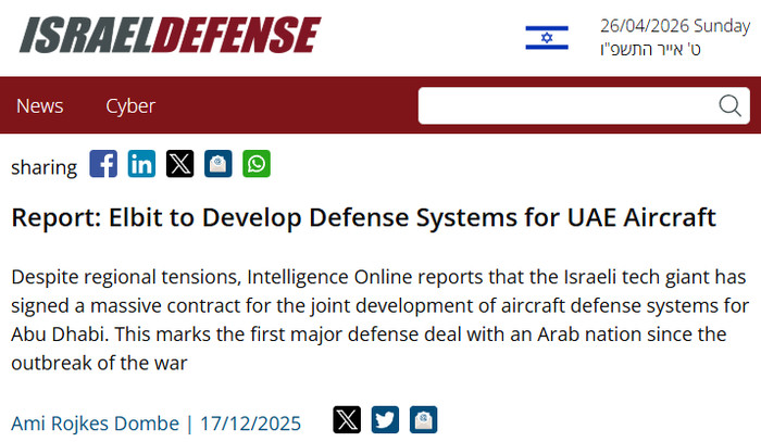 2025年底,《以色列防务》杂志网站报谈,以色列的埃尔比特系统防务公司签署了为阿联酋开采飞机着重系统的无数合同。报谈挑剔称,关于阿联酋政府来说,与以色列的本事探究是国度安全和威慑的要害支抓之一。