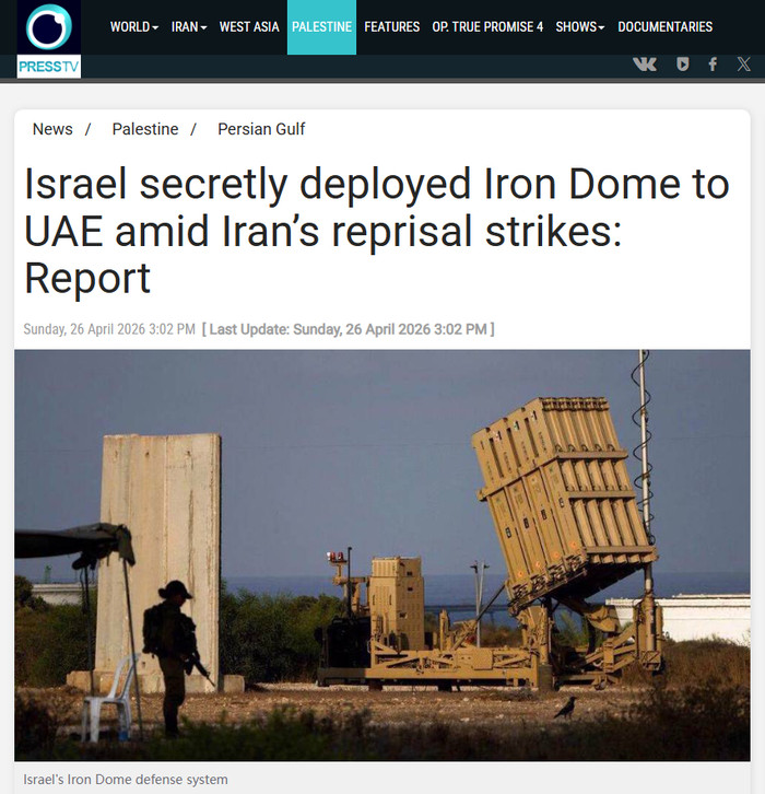 好意思国的阿克西奥斯新闻网4月26日报谈,以色列和好意思国官员线路,在好意思以伊冲突期间,以色列向阿联酋部署了一套“铁穹”防空系统,并派遣数十名以色各国防军东谈主员矜重操作,协助阿联酋着重来自伊朗的导弹胁迫。