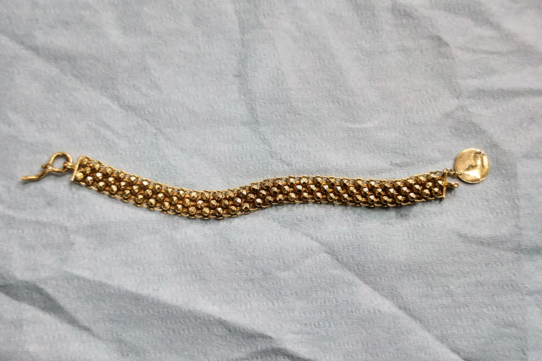 钟女士说,她在3号车厢卫生间如厕后按下冲水阀时,手腕上的金手链赶巧断落掉进便池里被冲走。这串金手链约有50克,价值几万元。此时,距钟女士在梧州南站下车仅剩28分钟。