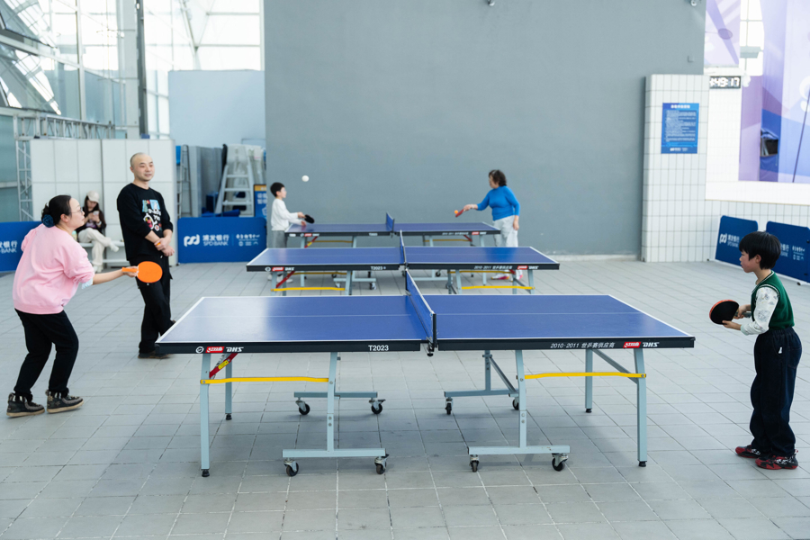 春节假期里,场馆内活力满满。羽毛球处所东谈主气最高,阮先生和球友打得竭力,“春节歇了三天,还好手感没丢!”乒乓球馆,不少都是全家皆上阵,九游有子母比赛,爸爸在一边当裁判。