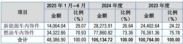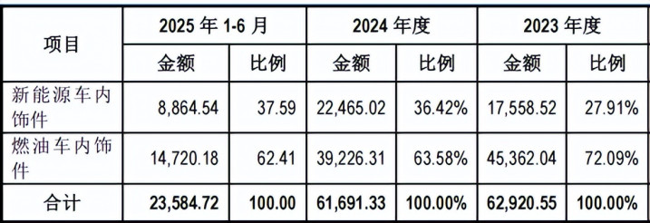 聚焦国内阛阓,开云体育app新能源业务上风更为凸起:2023年国内新能源内饰件收入1.76亿元,占比27.91%;2024年达2.25亿元,占比36.42%;2025年上半年达0.89亿元,占比37.59%,阛阓份额继续扩大。这种深度客户绑定不仅带来领悟订单,更酿成“研发-量产-阛阓反馈-技能升级”的闭环迭代机制,推动工艺与居品继续优化。