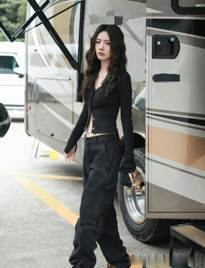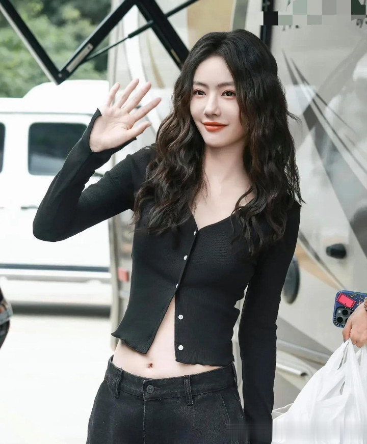 开云体育 蔡娴静会穿是数一数二的! 露腰古道衫+工装牛仔裤, 娴雅又洋气!
